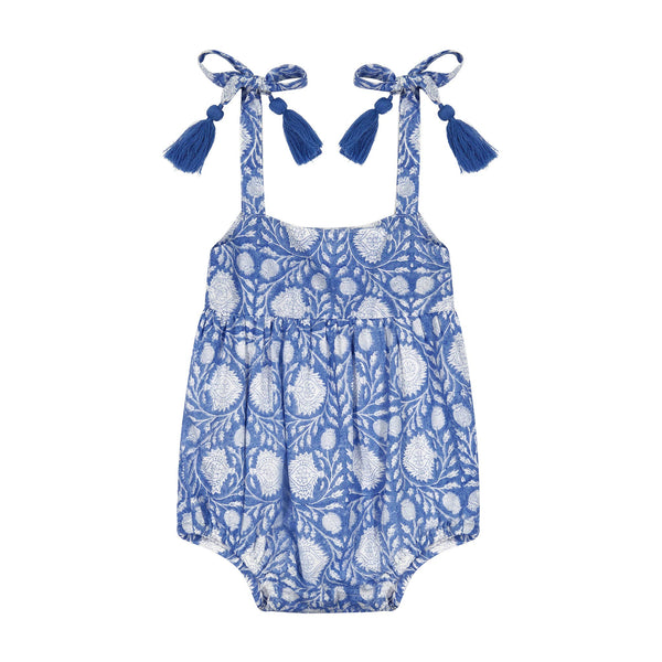 Zoe Shoulder Tie Baby Romper Farida Blue