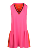 Adding a dose of feminine energy to your active lifestyle, the Varsity Daisy Dress in Berry Color Block takes sporty-chic style to the next level. This easy throw-on-and-go style features playful trim work along the V-neckline and a relaxed silhouette complimented with a drop waist seam. The performance fabric offers substantial stretch and support with cooling properties for all day comfort.