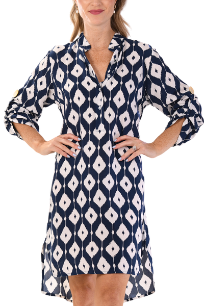 Day Tripper Dress in Navy Ikat by Walker and Wade