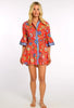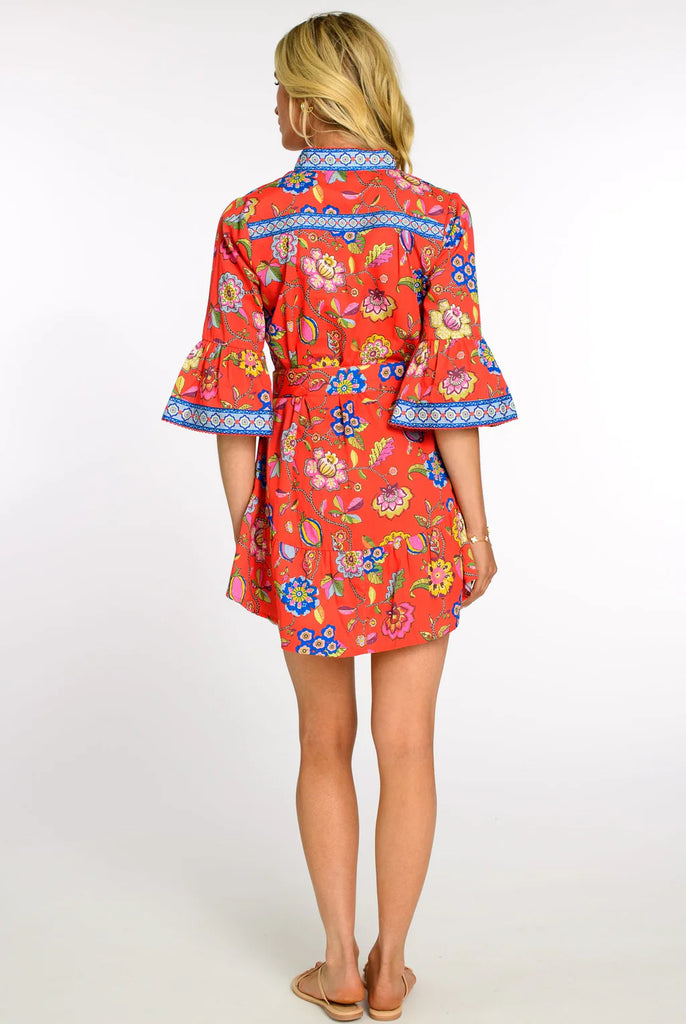 The Frances dress features a flattering mandarin collar, flirty flutter sleeves, and a ruffled skirt hem. Wear her belted or loose for an easy, go anywhere look.