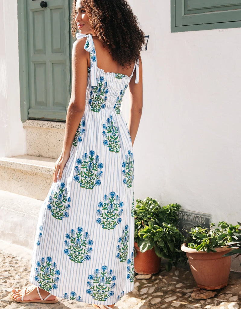 Effortlessly chic and breezy, our Martina Dress is your go-to Spring piece. Crafted from organic cotton and hand block-printed with our fresh new Dusk Botanical design, this dress features a flattering smocked body, adjustable tie straps, and a pretty gathered skirt for an easy, feminine silhouette.