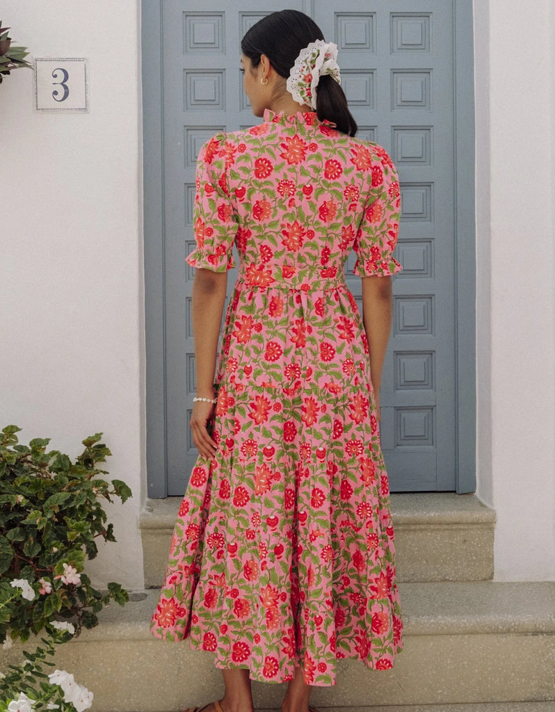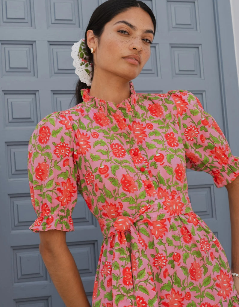 The Matilda Dress is your new go-to for effortless everyday style. Screen-printed by hand on organic cotton and featuring romantic puff sleeves, a frill neckline and cuffs, this dress is all about the thoughtful details.