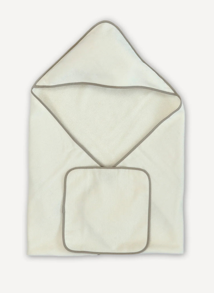 Sand Piped Hooded Bath Towel & Washcloth Set