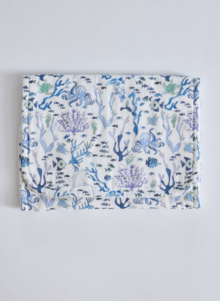 Beauty meets purpose. The Coral Reef Burp Cloth, constructed with a buttery soft cotton terry layer on the back and a beautiful printed muslin front, is absorbent yet elegant.