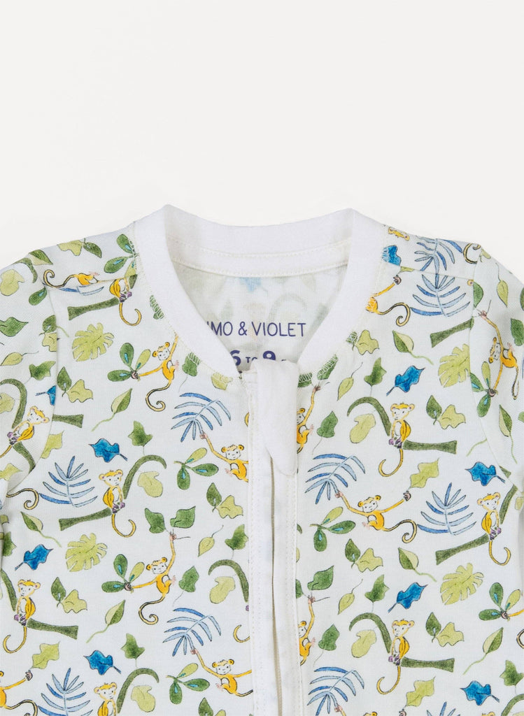 The perfect one-piece in our Happy Monkey print. With fold-over hand mittens (for sizes up to 9-12 months) to ensure no scratches, fold-over foot cuffs for versatility, and a double zipper for easy diaper changes.