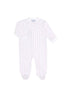 The footie is designed with a pristine white collar for a classic look. Available in sizes NB-12 months, it's perfect for infants and babies up to 1 year old.