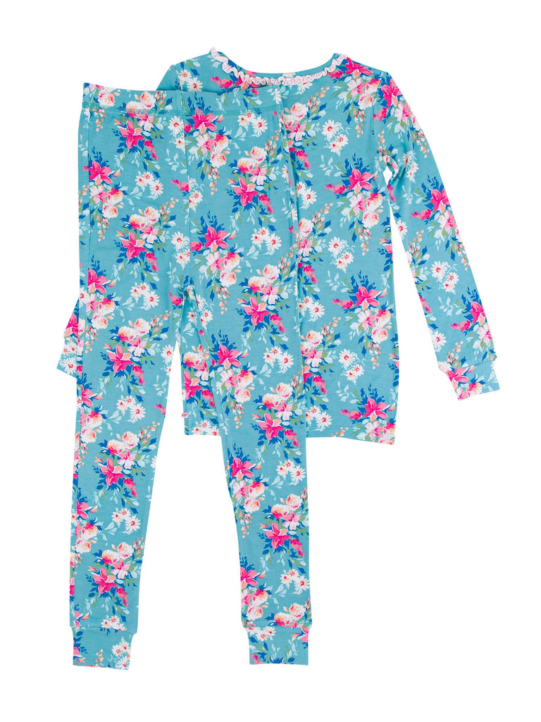 Girls Fancy Me Floral Bamboo Viscose Ruffle Long Sleeve Pajama Set