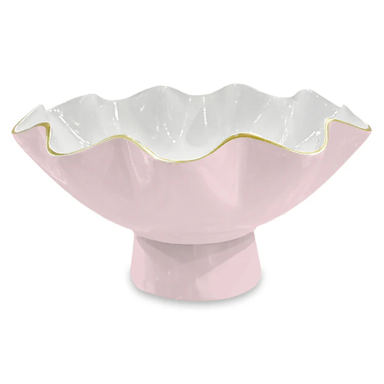 Fabulous design in a soft blush hue. The ENCANTO Carola Small Pedestal (Camellia and White) charms with its two-tone finish rimmed in gold and playful curves. The Camellia shade, as delicate and pink as its namesake flower, adds warmth and romance to any setting.