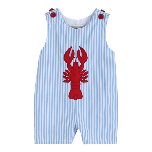 Blue Striped Crawfish Applique Shortalls