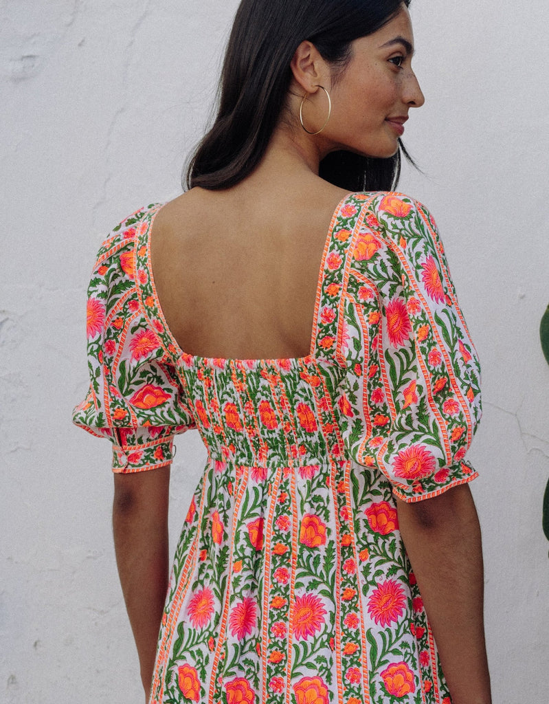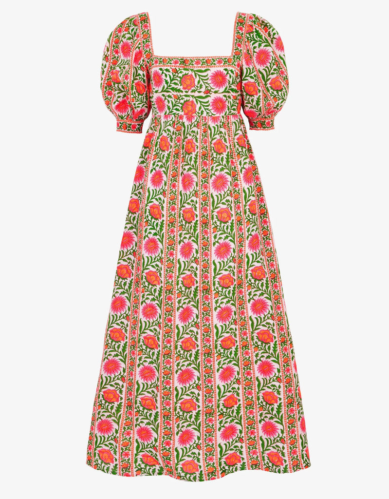 A true statement piece, the Elizabeth Dress in our bold Neon Border print is all about effortless luxury. Featuring a chic square neckline and a flattering empire waist, the Elizabeth Dress drapes beautifully, offering both comfort and sophistication.