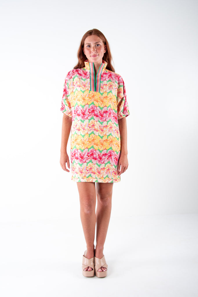 Our signature Poppy Dress in Azalea is perfect for casual days and dressed up evenings. Loose fitting with an optional stand up collar and knee length hem. Dress up with a heel or go casual with a sneaker, the Poppy Dress is versatile for every style!