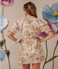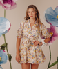 Floral mini shirt dress with scallop trim and matching tie at the waist