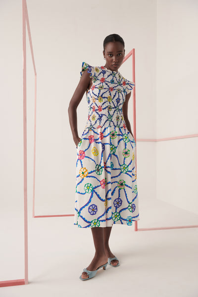 Corfu Dress in Poppy Stripe by Pink City Prints