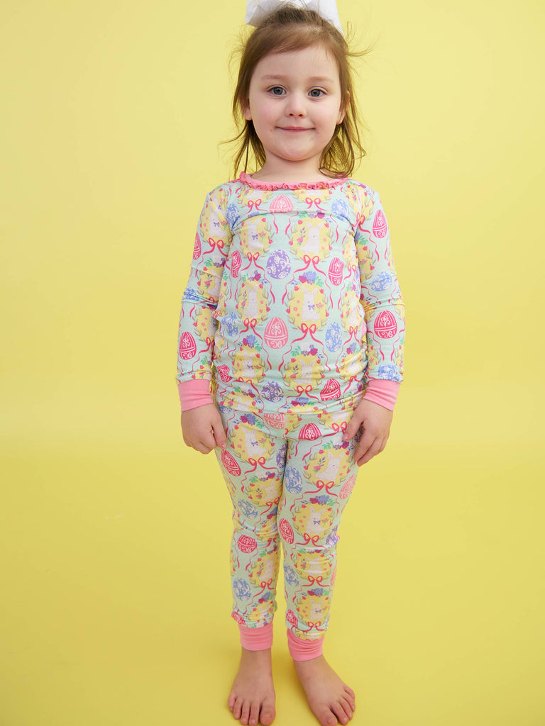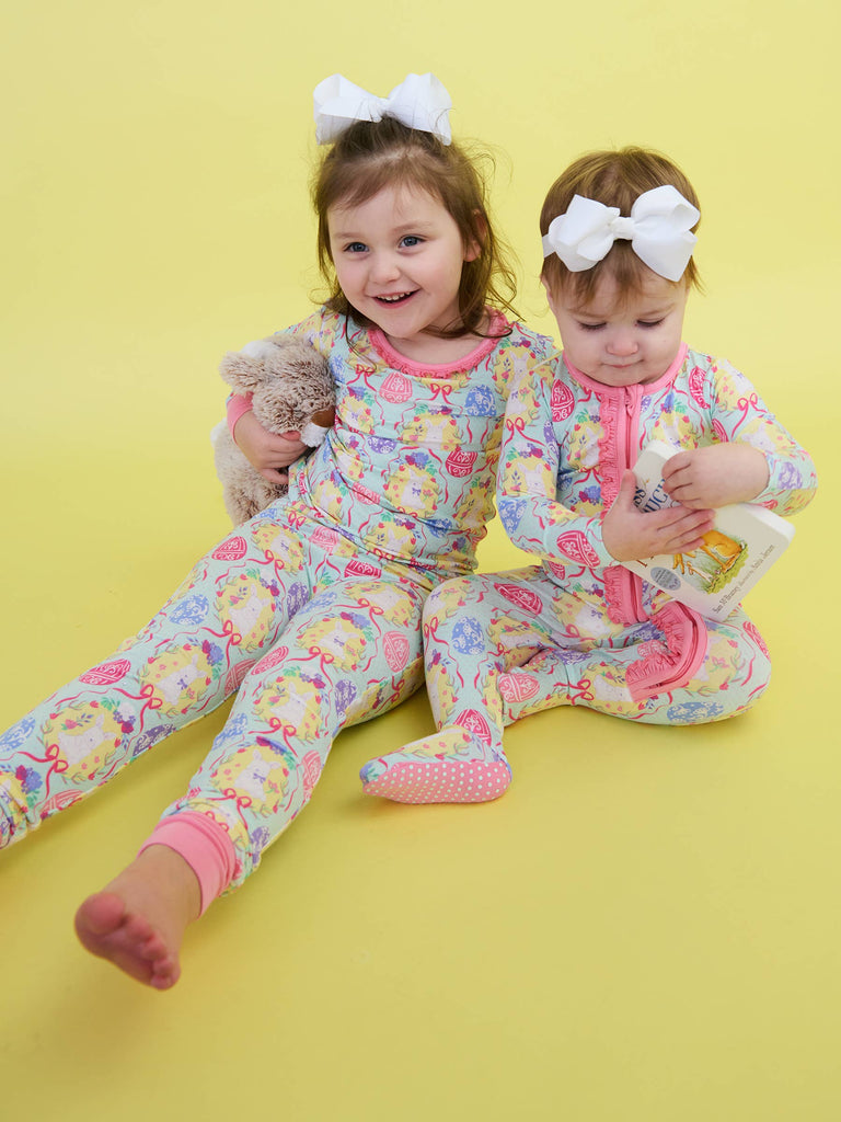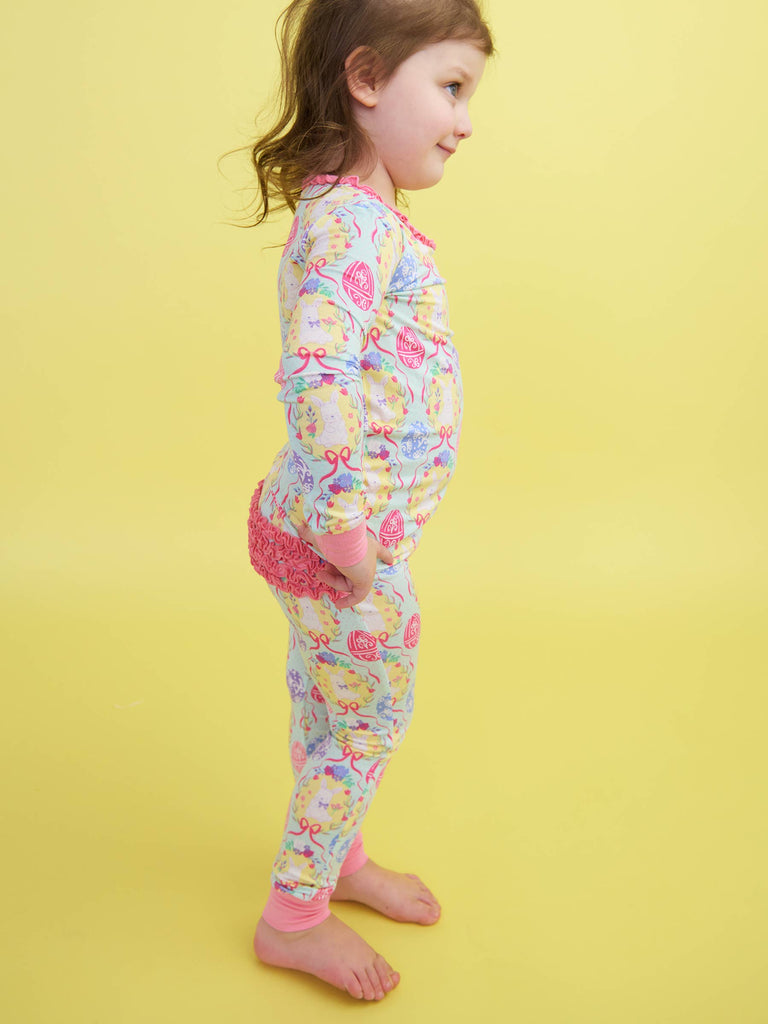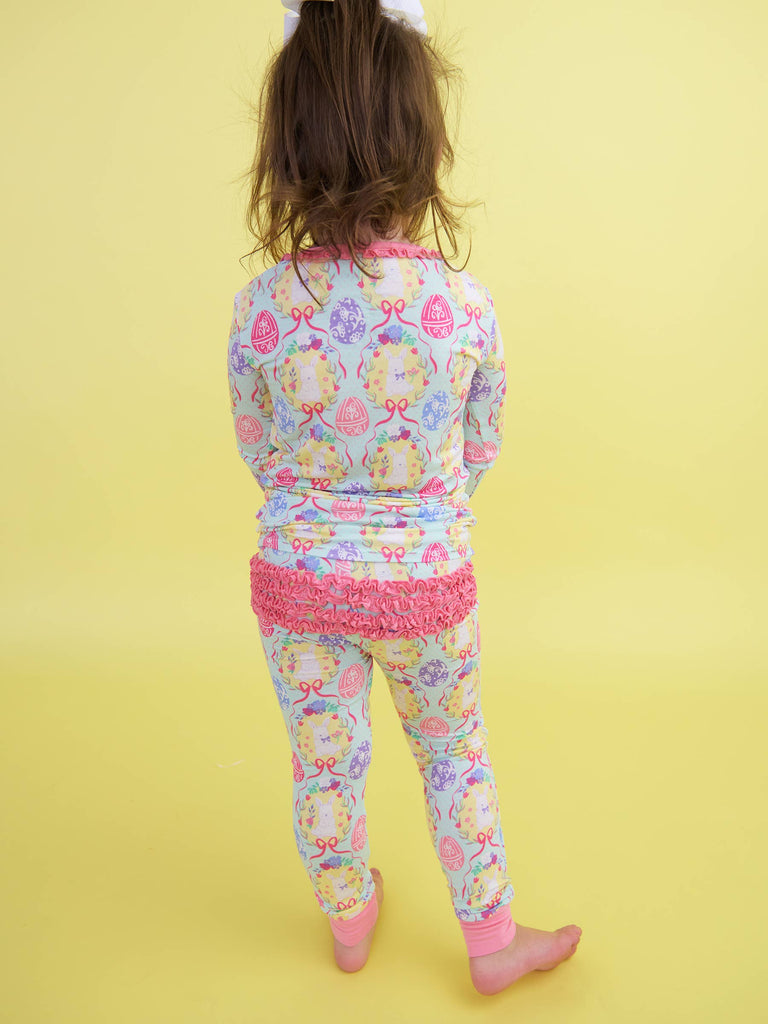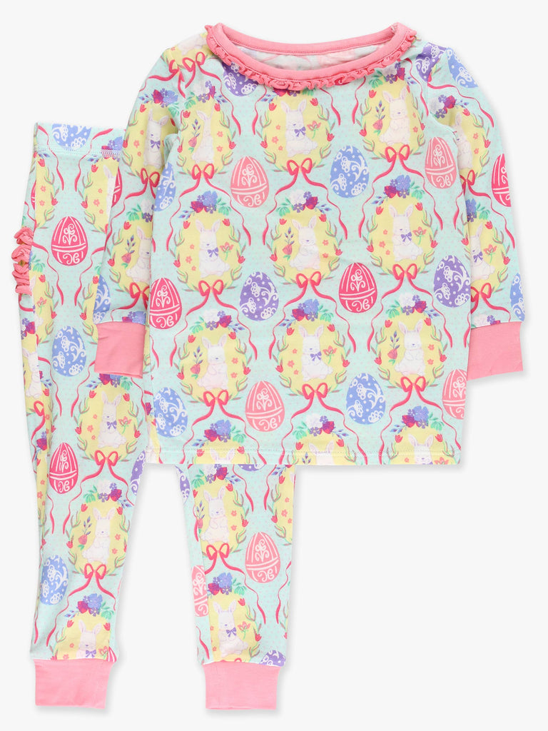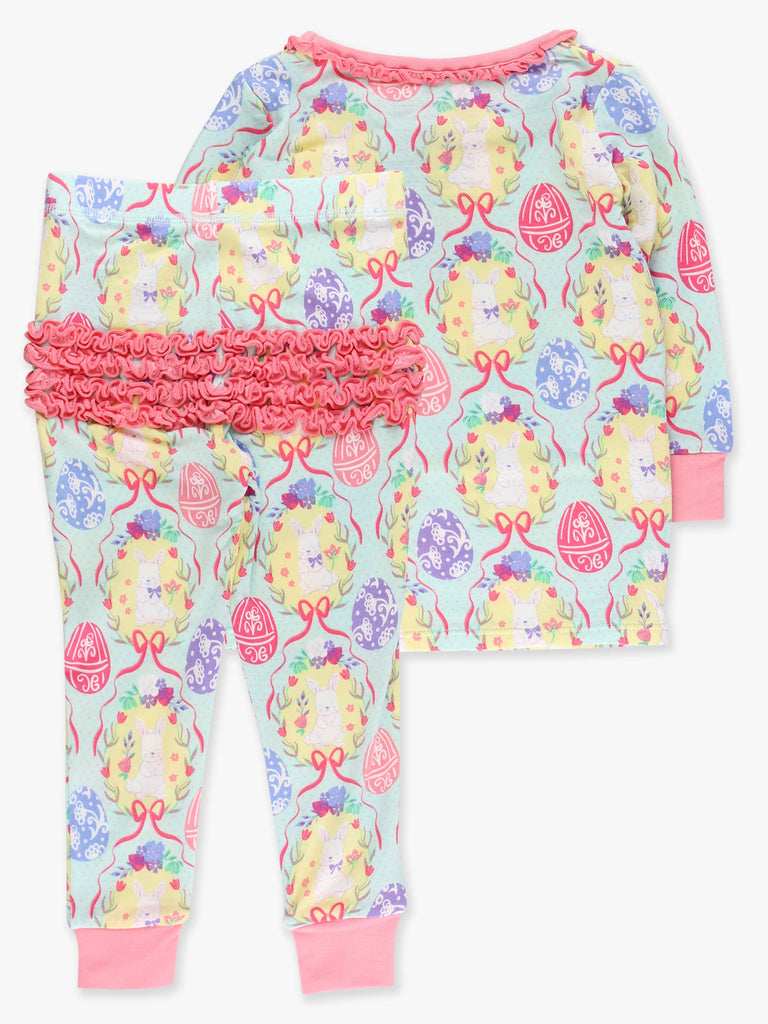 SoftSnooze™ Toddler Girls Bamboo Viscose Bunnies in Bloom Ruffle Long Sleeve Pajama Set with Signature Rear Ruffles