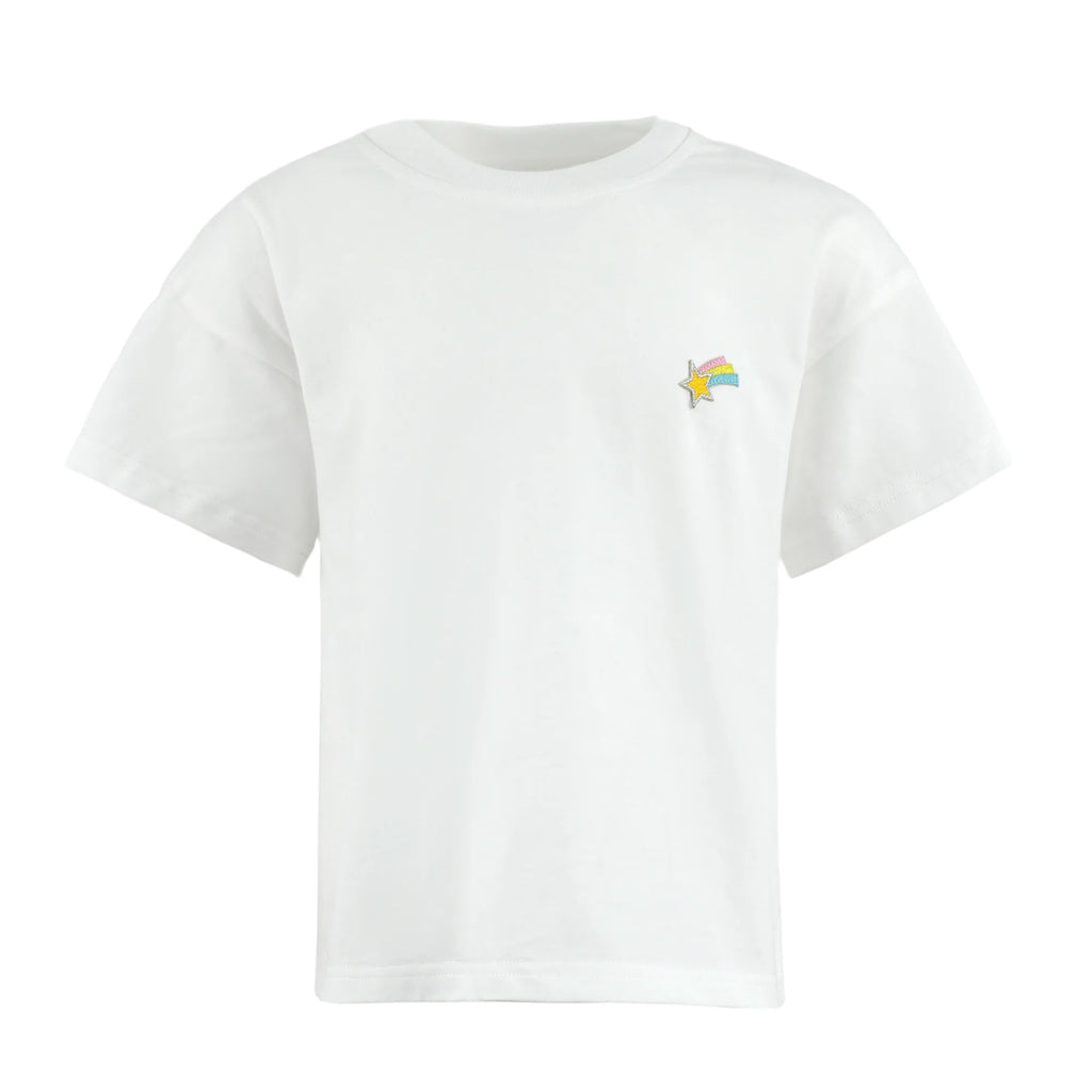 Sparkling T-shirt featuring an eye-catching shooting star design adorned with crystals, adding a touch of whimsy and shine to any outfit