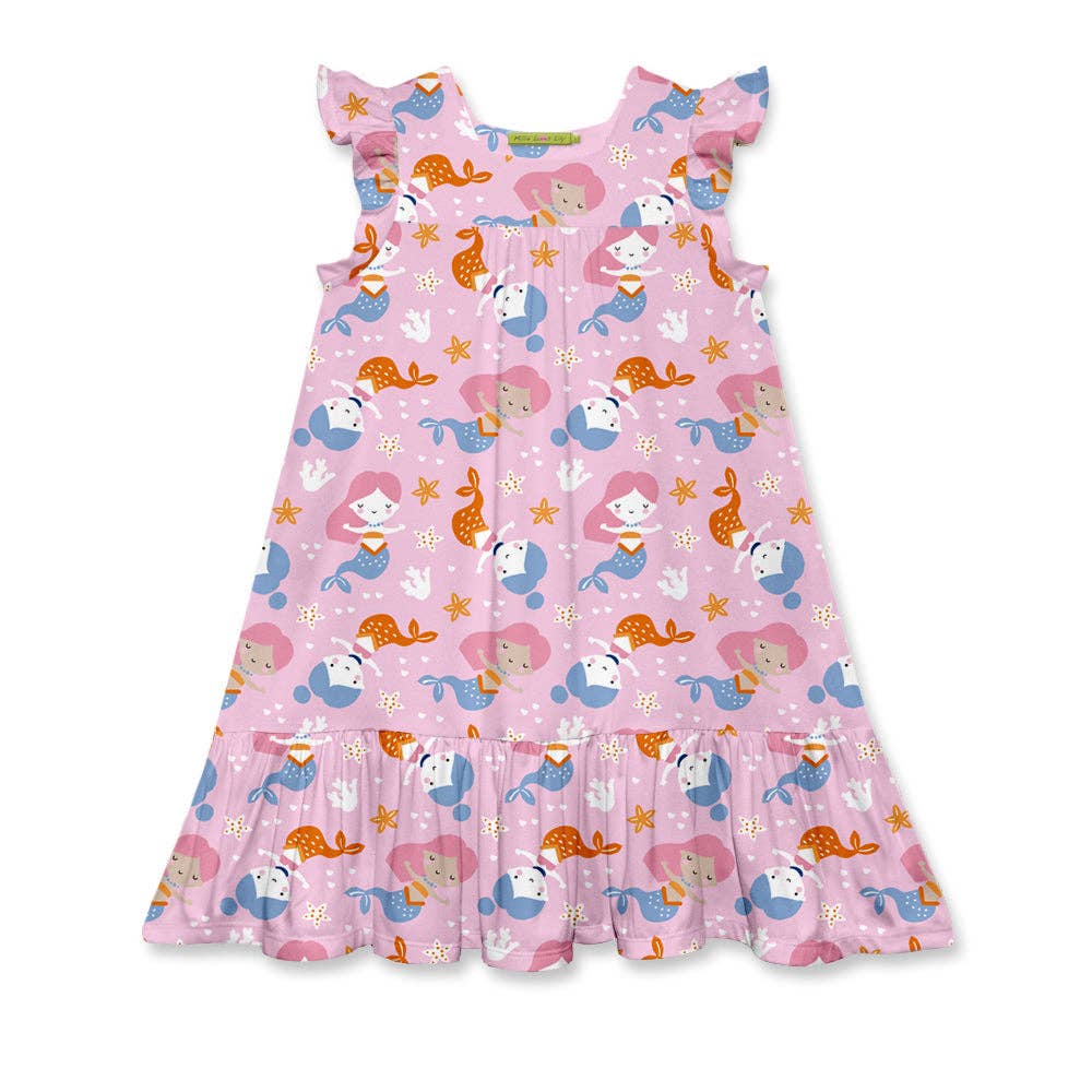 Girls Pink Mermaid Swim Ruffle Hem Dress