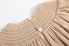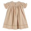 Light Brown Pinstripe Pumpkin Smocked Bishop Dress