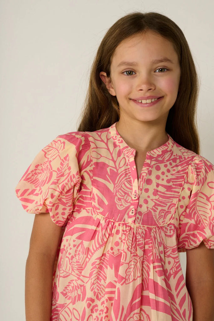 Mini Dress Cruz for Girls in Pink Toucan by Poupette St Barth