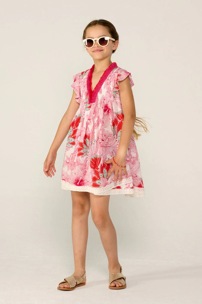 Mini Dress Sasha for Girls in Pink Padang by Poupette St Barth