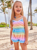 Adorable romper featuring a pastel ombré design for a dreamy, colorful look.