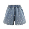 Add an edge to your style with this denim shorts, featuring eye-catching crystal embellishments throughout.