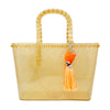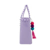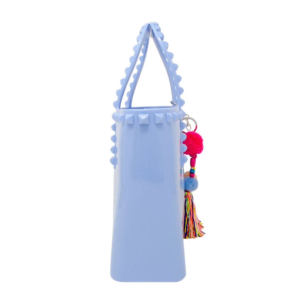 Our jumbo jelly tote bag – a stylish blend of compact design and easy maintenance. Adorned with studs on the handle and top, this roomy tote is both edgy and functional. Crafted from wipeable jelly material, spills are no match for its easy cleaning. The surprisingly spacious interior is complemented by a playful tassel charm, making it your go-to accessory for any occasion. Elevate your style effortlessly – grab our Jelly Tote and make a statement! Comes with tassel (Tassel color may vary)