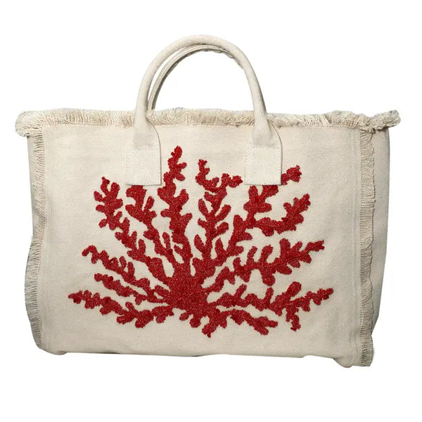 Coral Beaded Fringe Tote