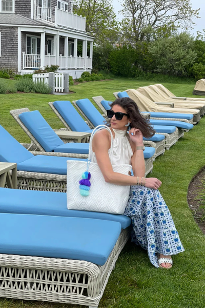 Blue Starfish Beaded Fringe Tote
