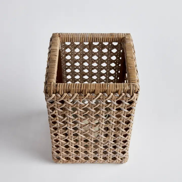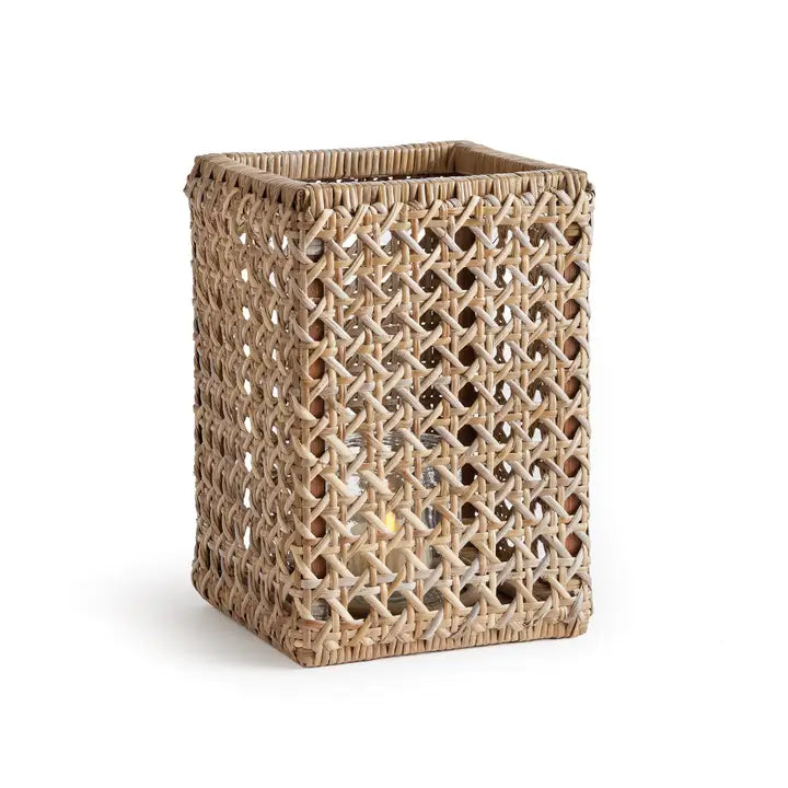 Designed with traditional caning, this hurricane adds a classic touch. Complete with recycled glass closed bottom vessel, so fill with candle or fresh flowers. A truly versatile lantern.