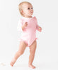 A wonderful addition to your little girl's swimwear, this One Piece Rash Guard is comfort and style rolled into one. Unlined with snaps at bottom that make for easy changing. Made with sun protected fabric for all day protection and comfort.