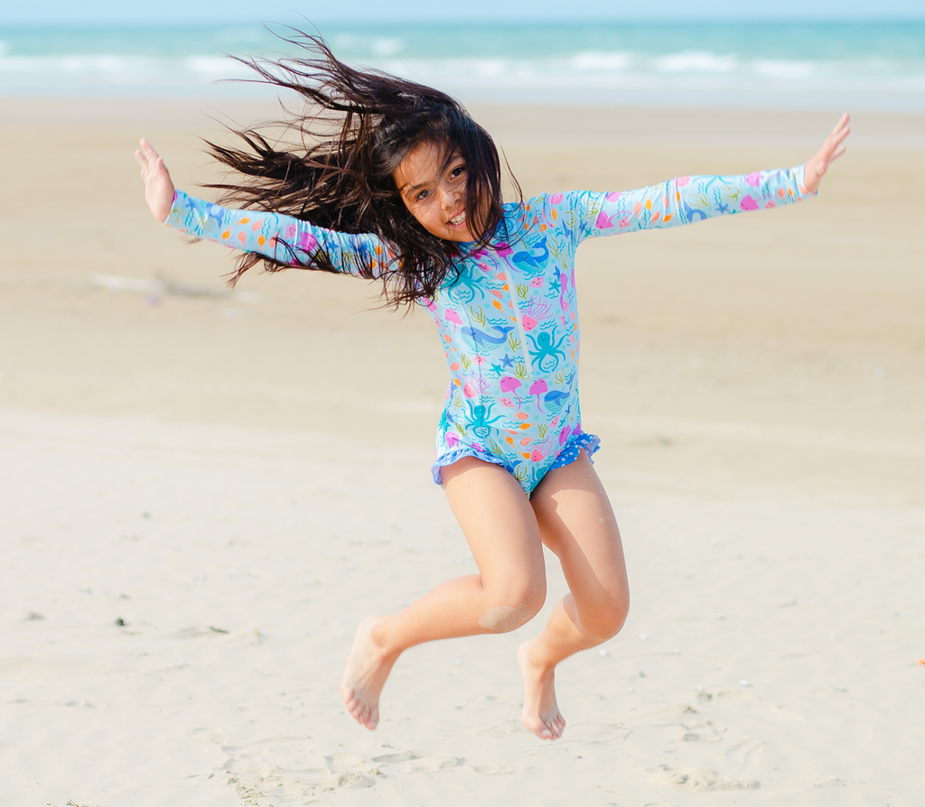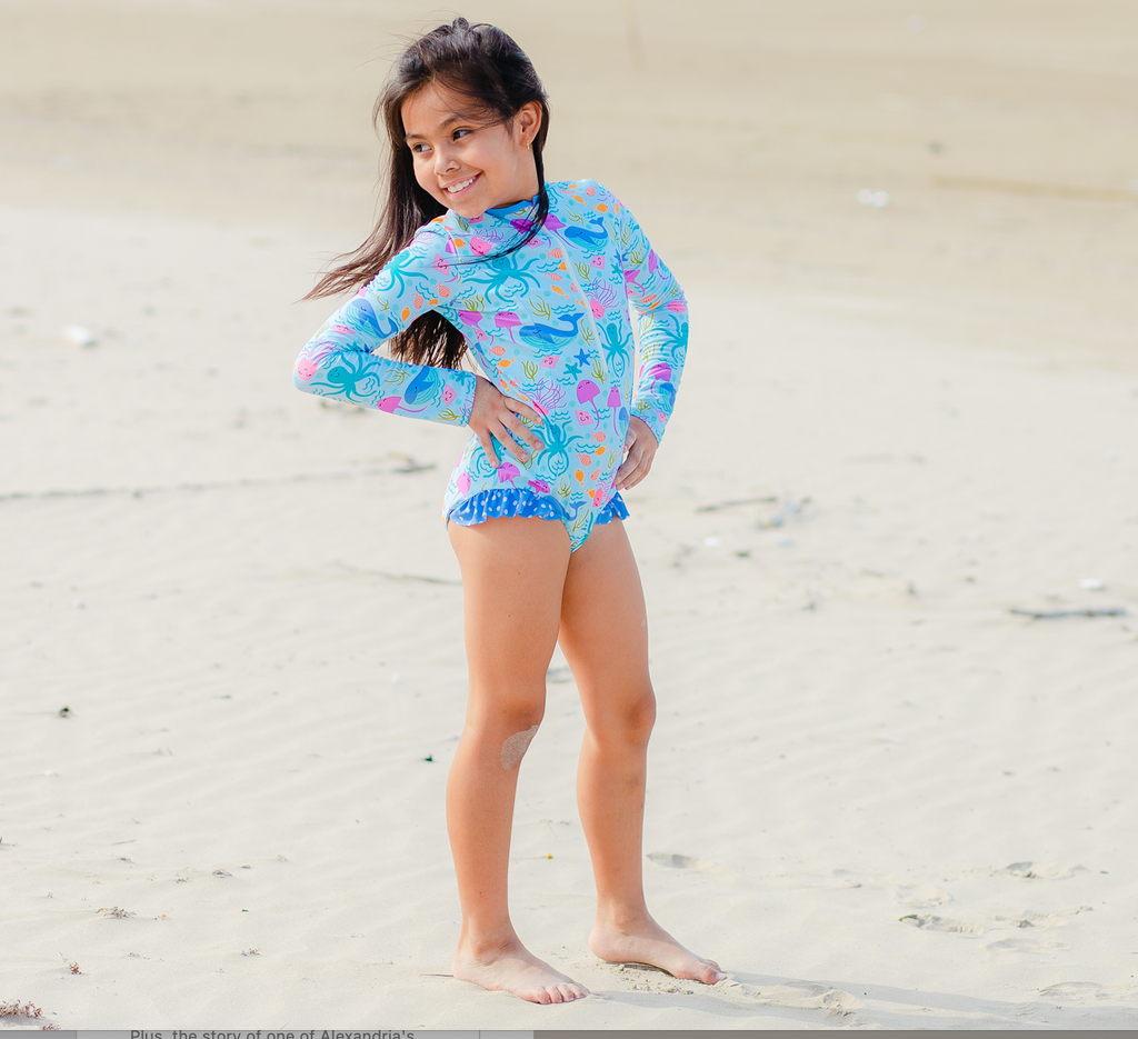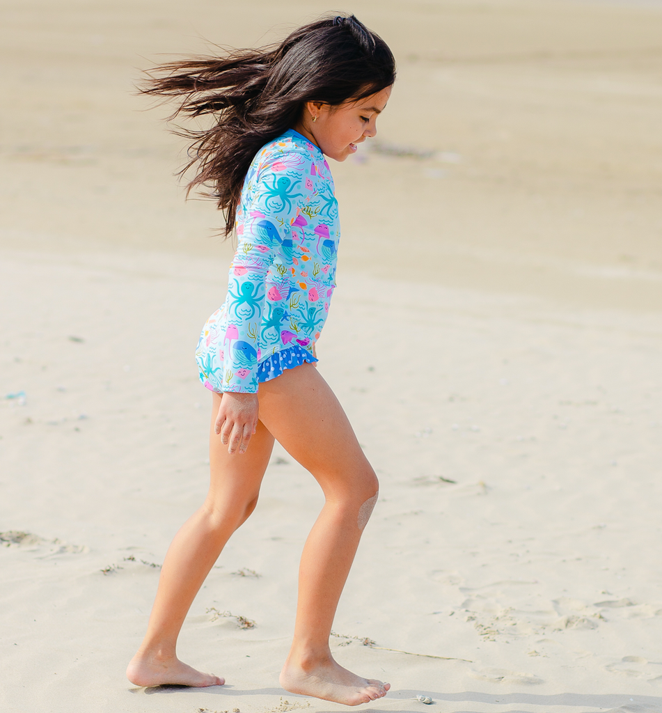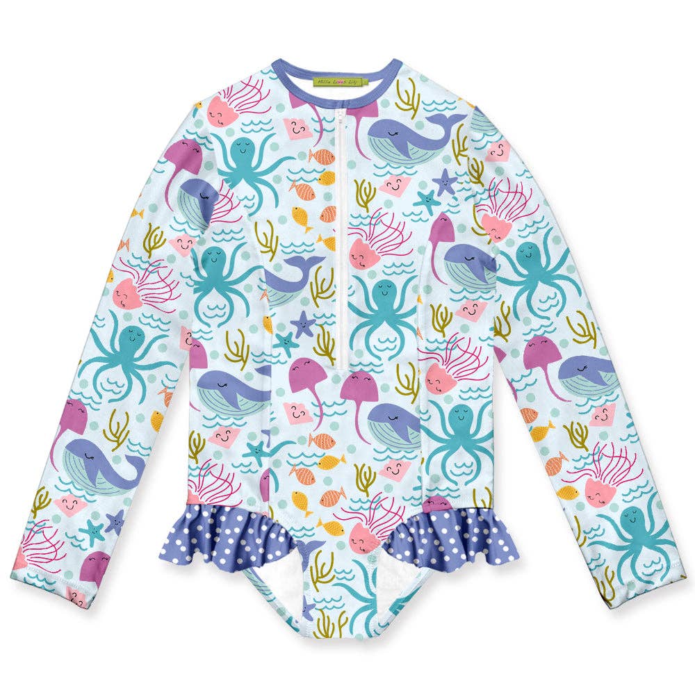 Girls Ice Blue Sea Creatures One-Piece Rashguard