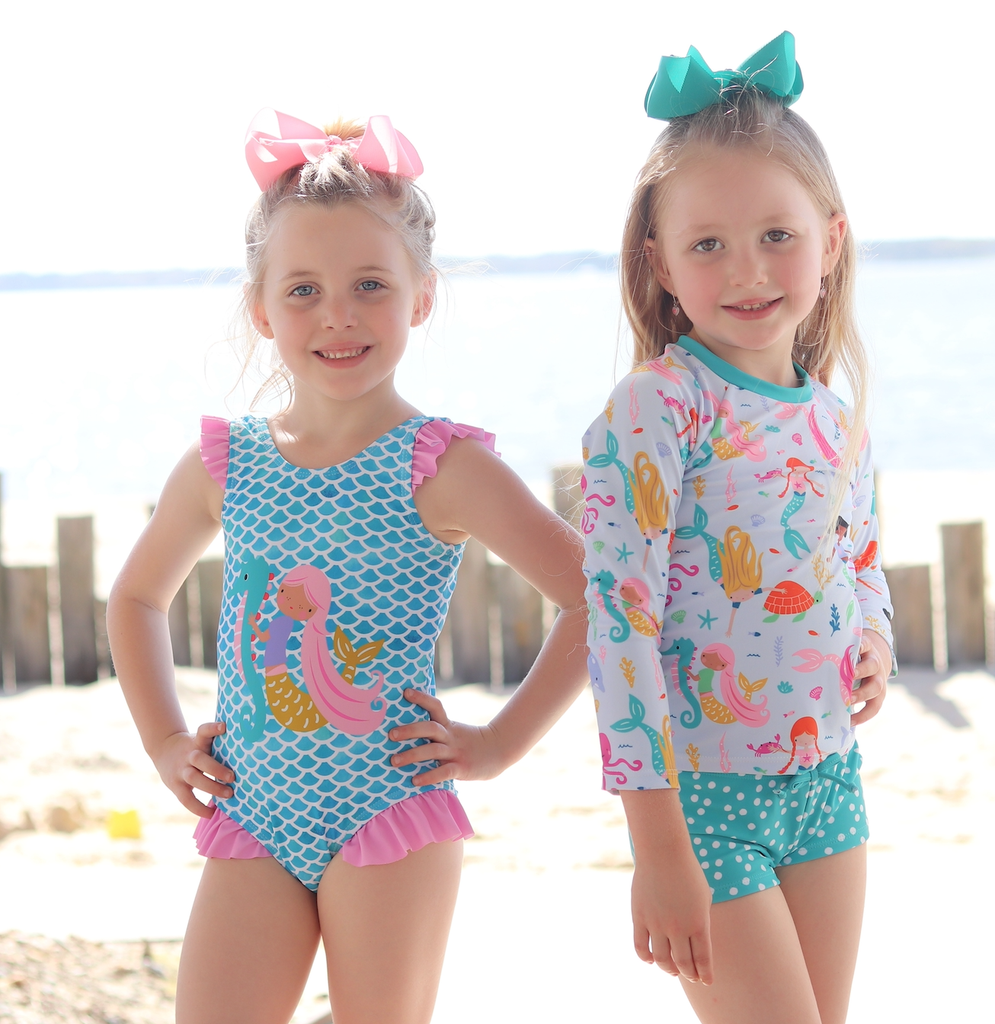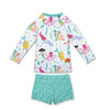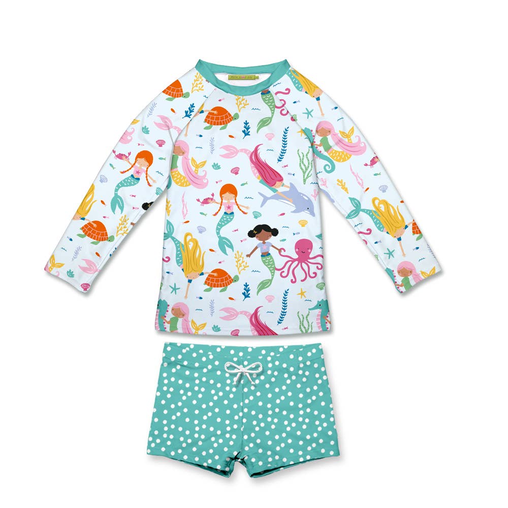 Ice Blue Mermaid Girls Swim Long-Sleeve Rashguard Set
