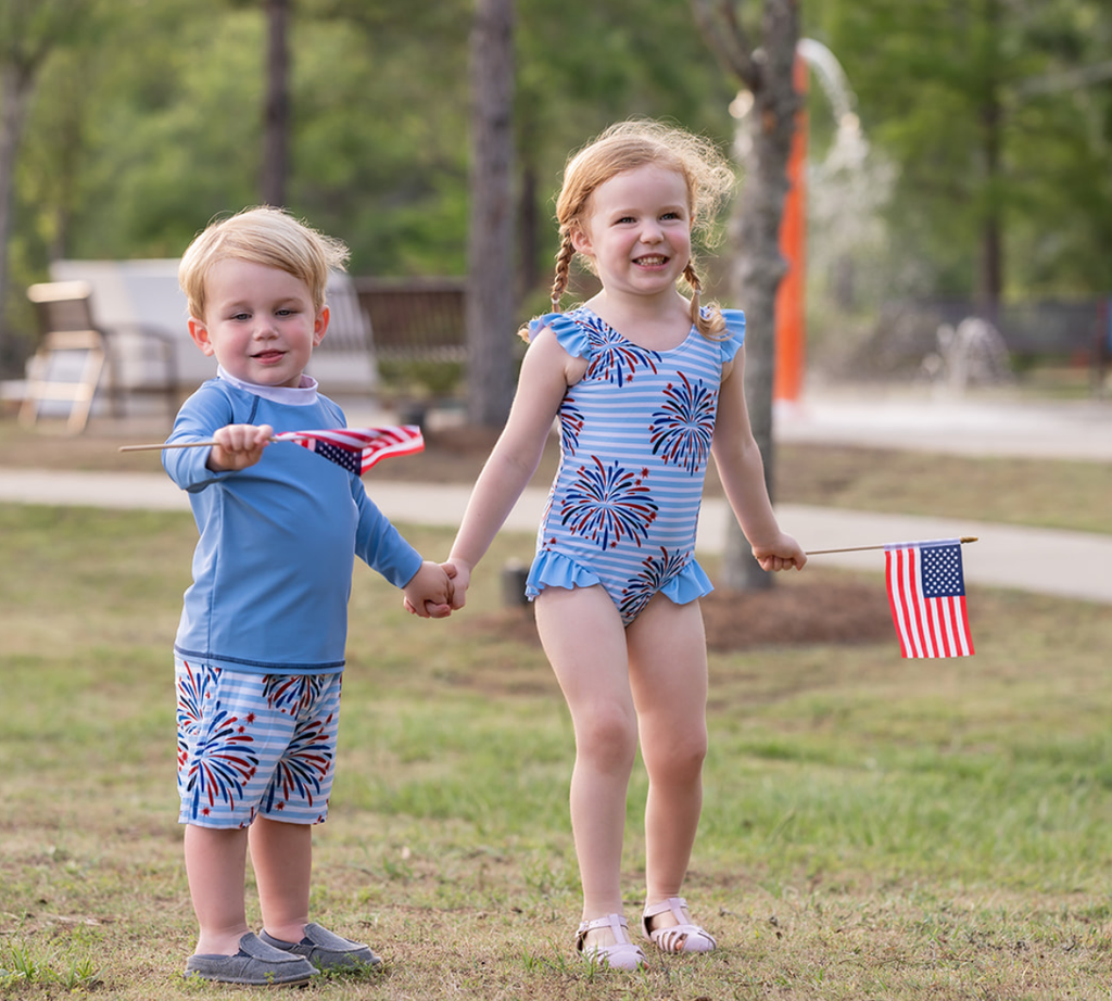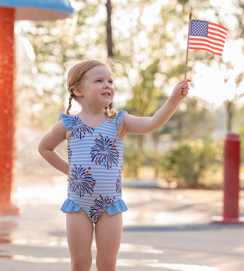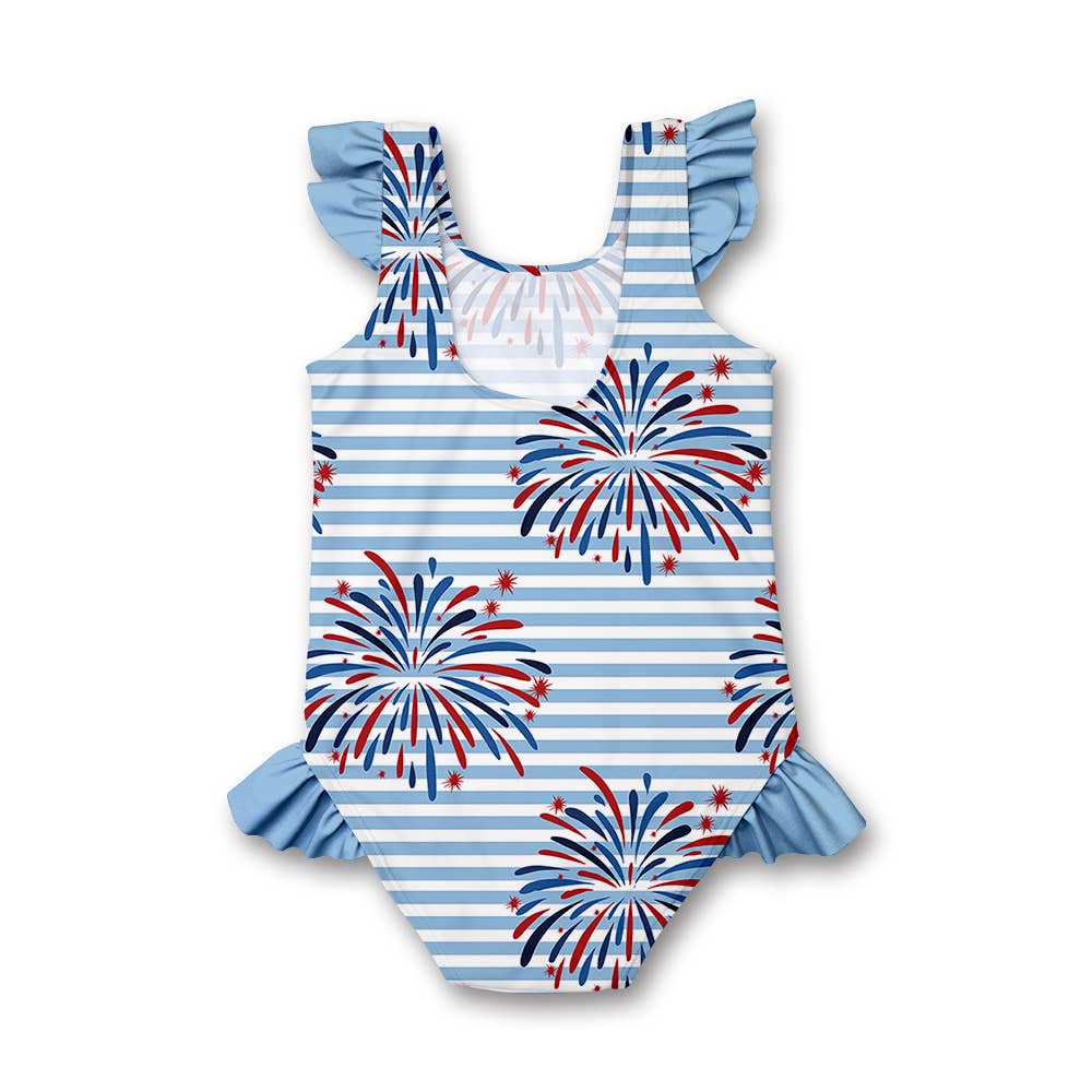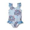 Light Blue Fireworks Girls Swim Ruffle-Accent One-Piece