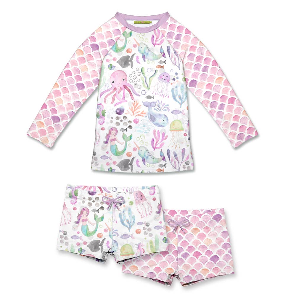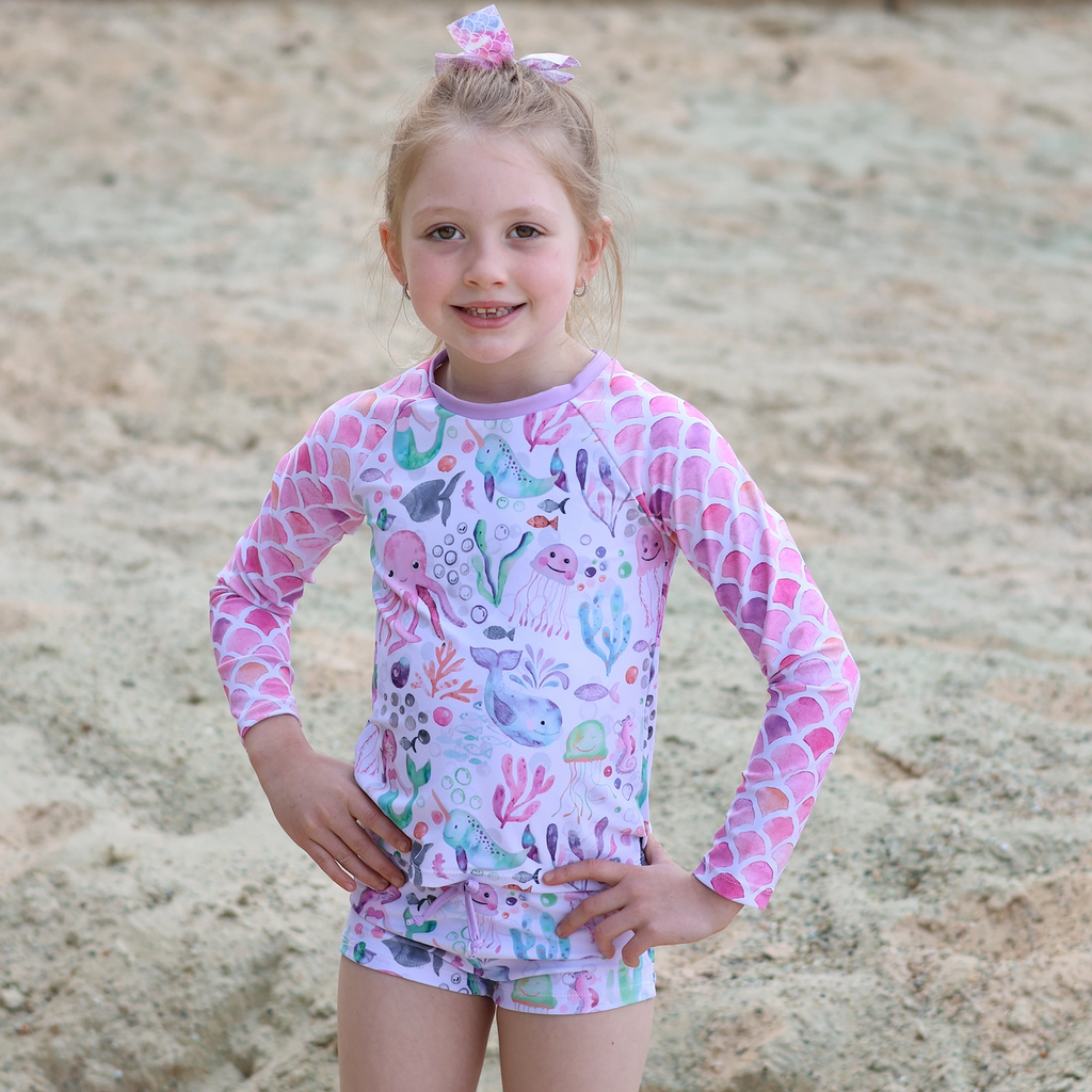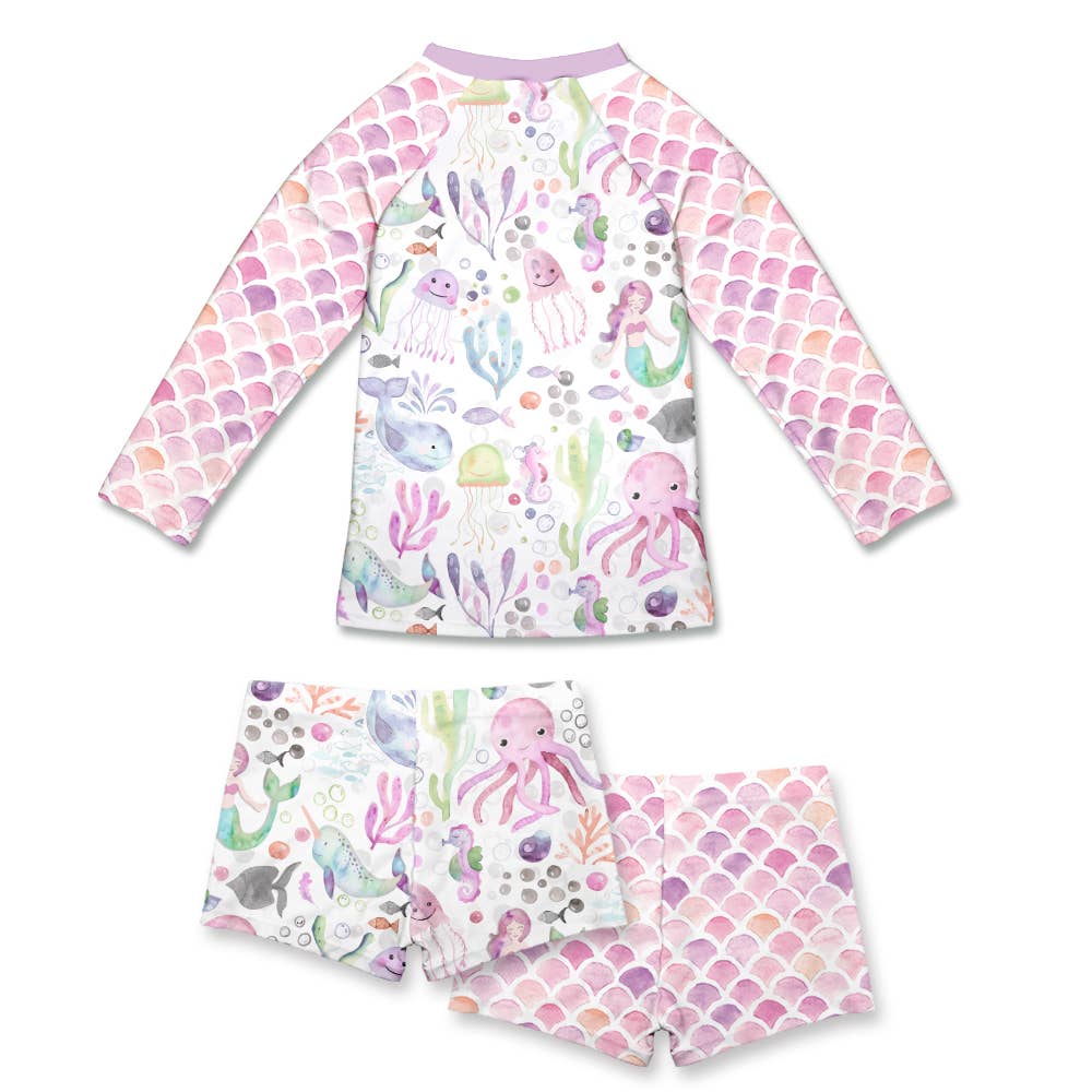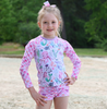 Lilac Sea Dreams Girls Swim Long-Sleeve Rashguard Set
