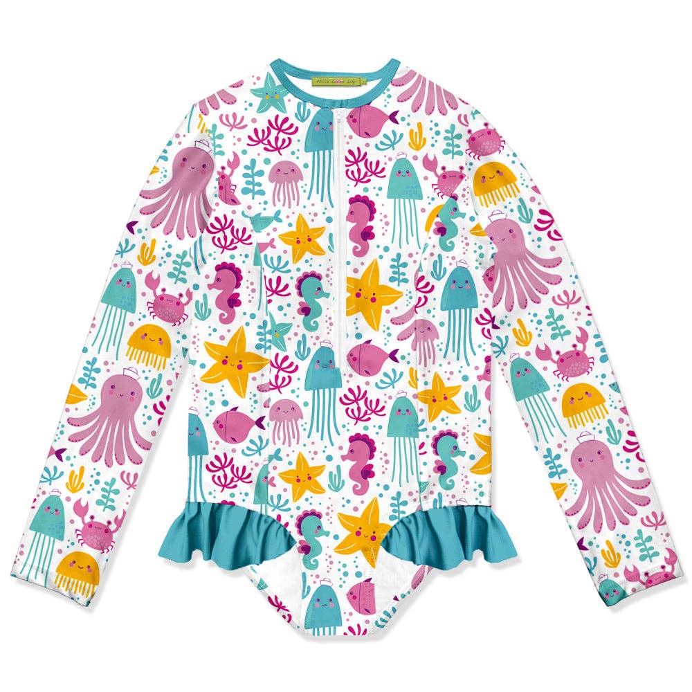 Ocean Wonder Ruffle-Accent Girls Swim One-Piece Rashguard