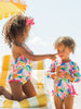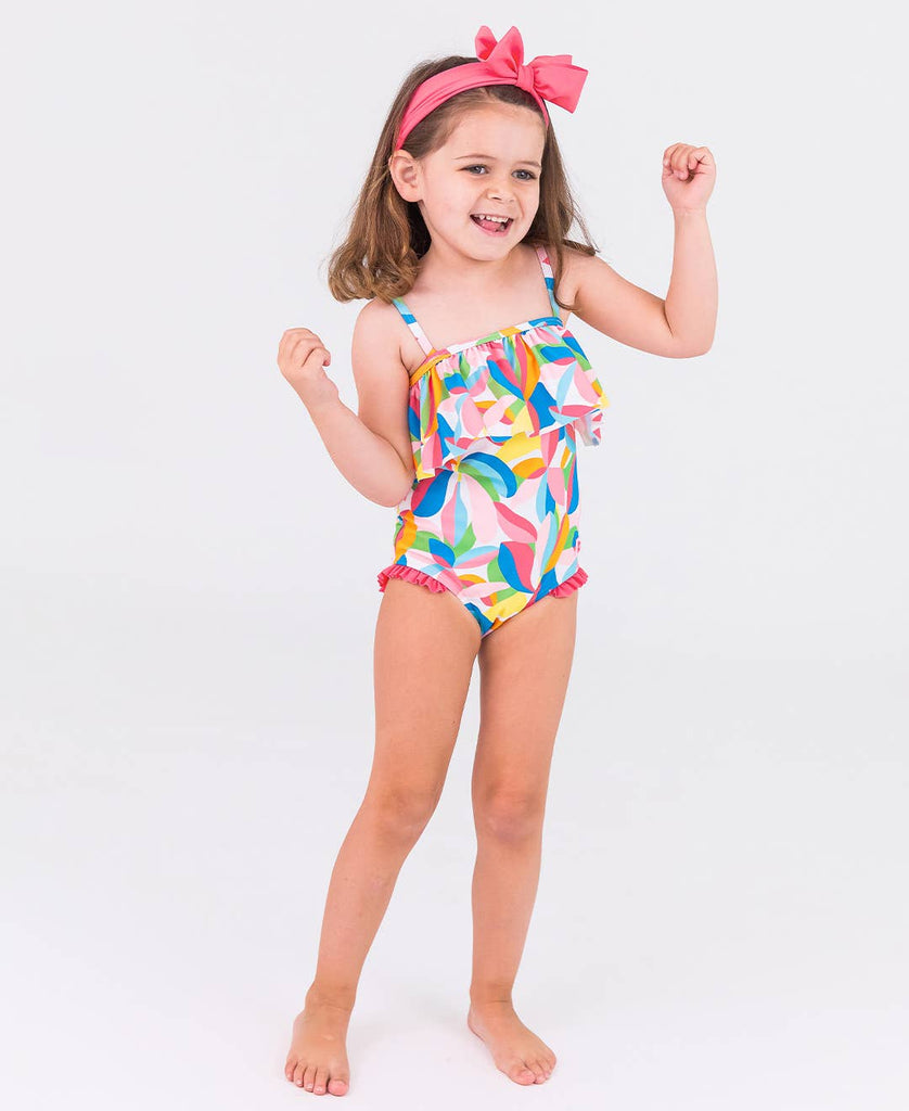 If you're in the market for an adorable one-piece ruffle swimsuit for your little girl, have we got the one for you! This fully lined suit is made with sun-safe fabric and comes in a variety of fun prints that will have her fun in the sun all summer long.