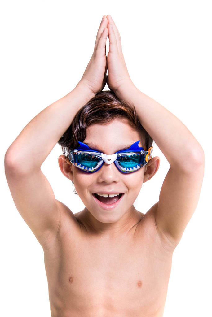 Make a fierce splash with Jawsome Small Bite, Bling2o’s shark-themed kids' swim goggles! Featuring a full lens with shark teeth graphics, playful shark fin gaskets, and fun googly-eyed side accents, these goggles are perfect for adventurous young swimmers.