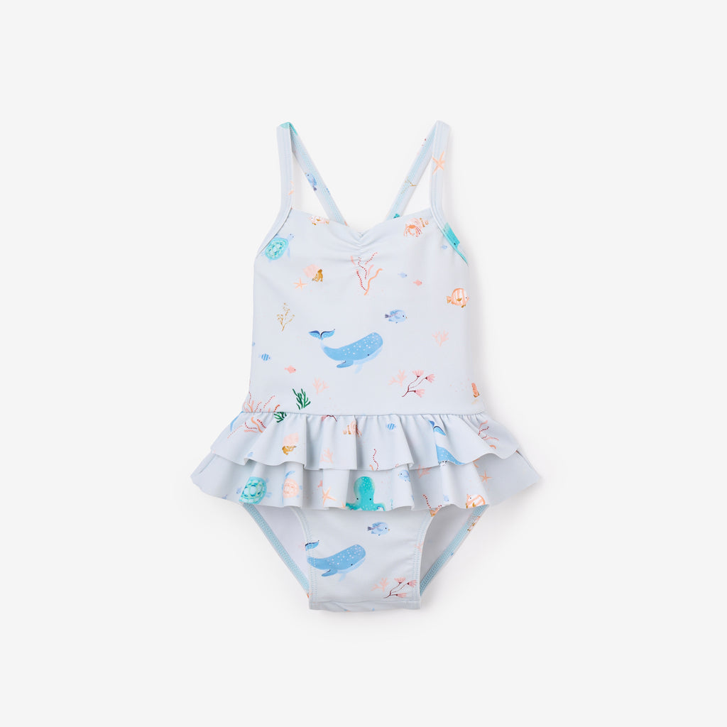 Pale Blue Ocean Adventure Baby Ruffle Swimsuit