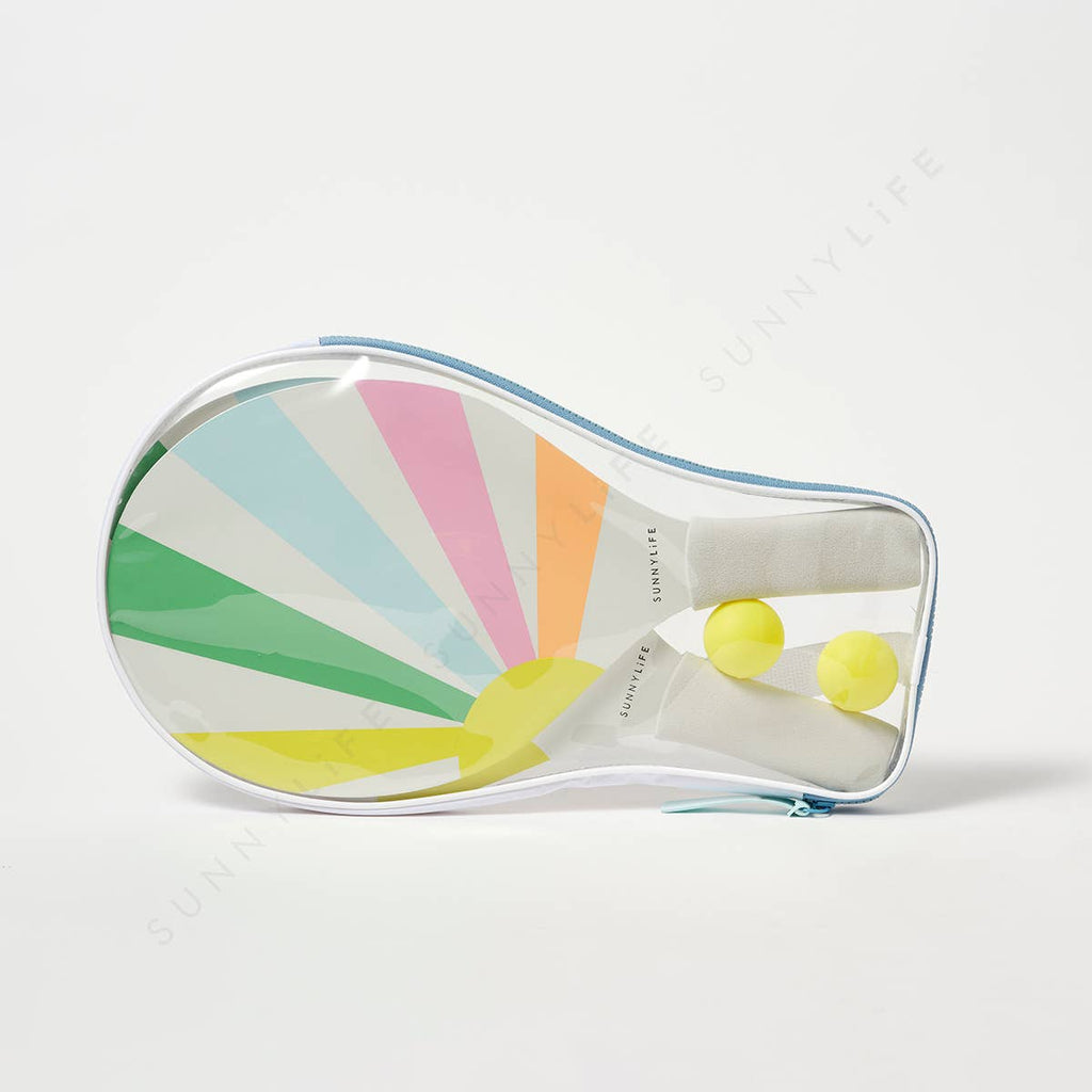 Set includes x2 beach bats, x2 balls. Soft foam handles for a firm, comfortable grip. Handy zipper case. Adjustable carry strap.