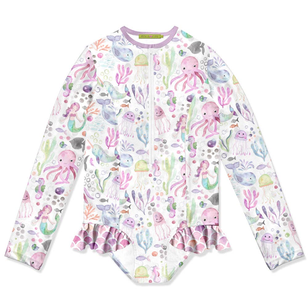 White Octopus Sea Ruffle-Accent One-Piece Rashguard