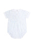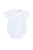Dress your little one in timeless charm with our Blue Twirl Bubble. Crafted from the finest 100% Pima cotton, this adorable bubble features a delicate light blue twirl pattern. The classic design is enhanced with a crisp white collar and detailed white trim on the arms, adding an elegant touch to this baby essential.