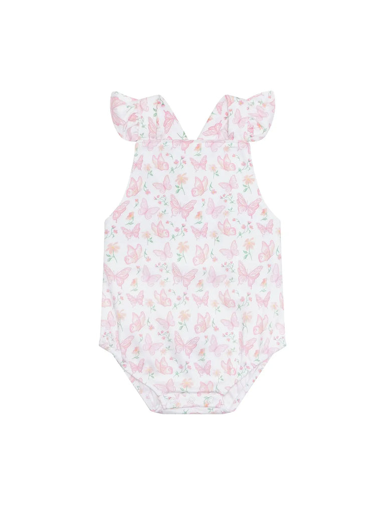 Our Butterflies Print Ruffle Bubble is designed to bring a touch of playful charm and adorable style to your baby's wardrobe. With its delightful butterflies and charming ruffles on the back, this bubble is sure to make your little one look and feel extra special.
