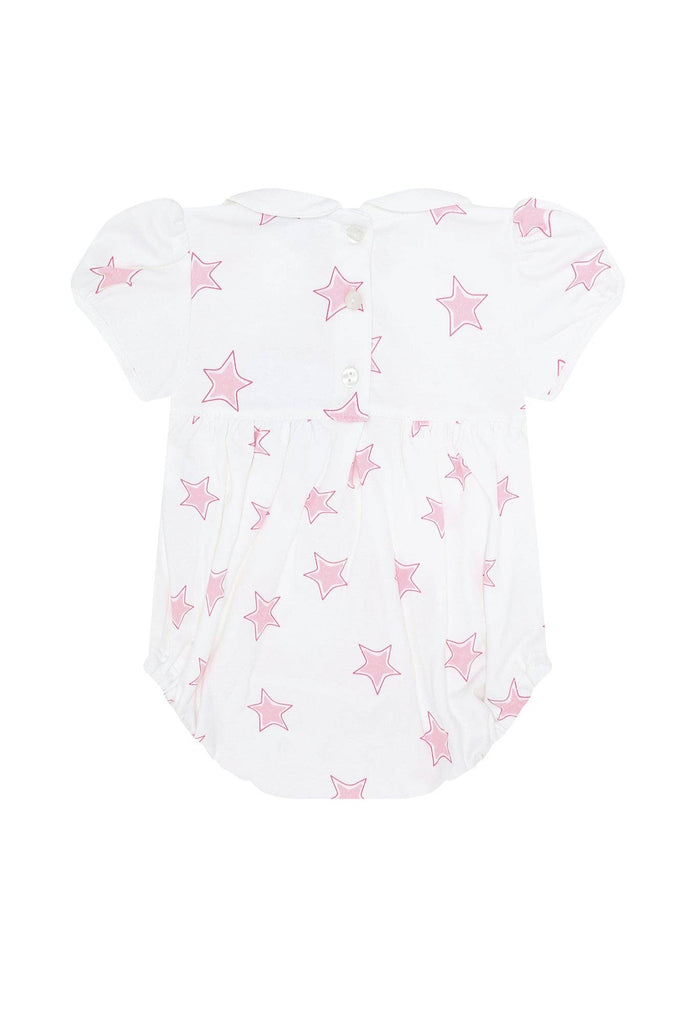 Pink Stars Print Smocked Bubble
