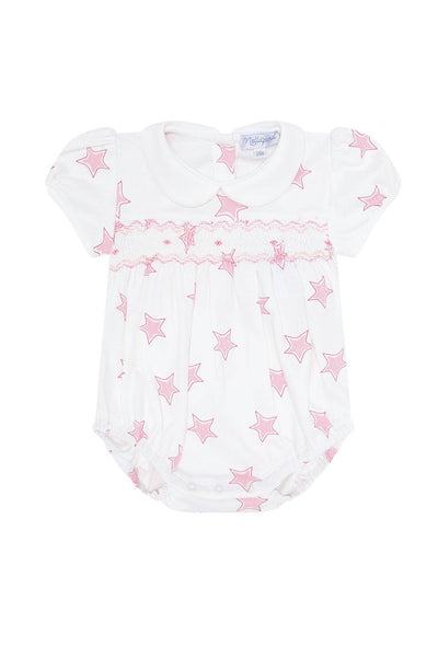 Pink Stars Smocked Baby Bubble