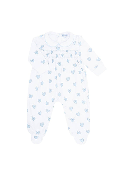 Blue Heart Print Smocked Footie