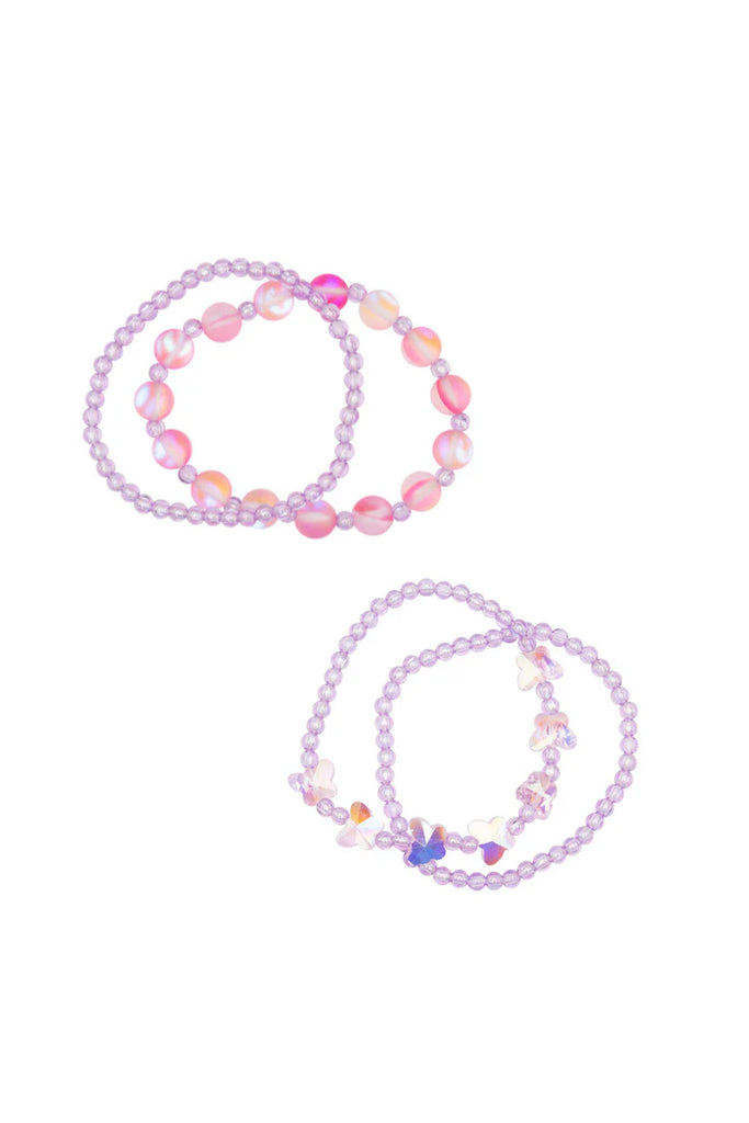 Translucent pink and purple beads and sweet butterfly designs evoke a light and airy elegance that is sure to delight! Our Boutique Shimmer Butterfly Bracelets come in 2-piece sets that can be worn together or shared with a friend!