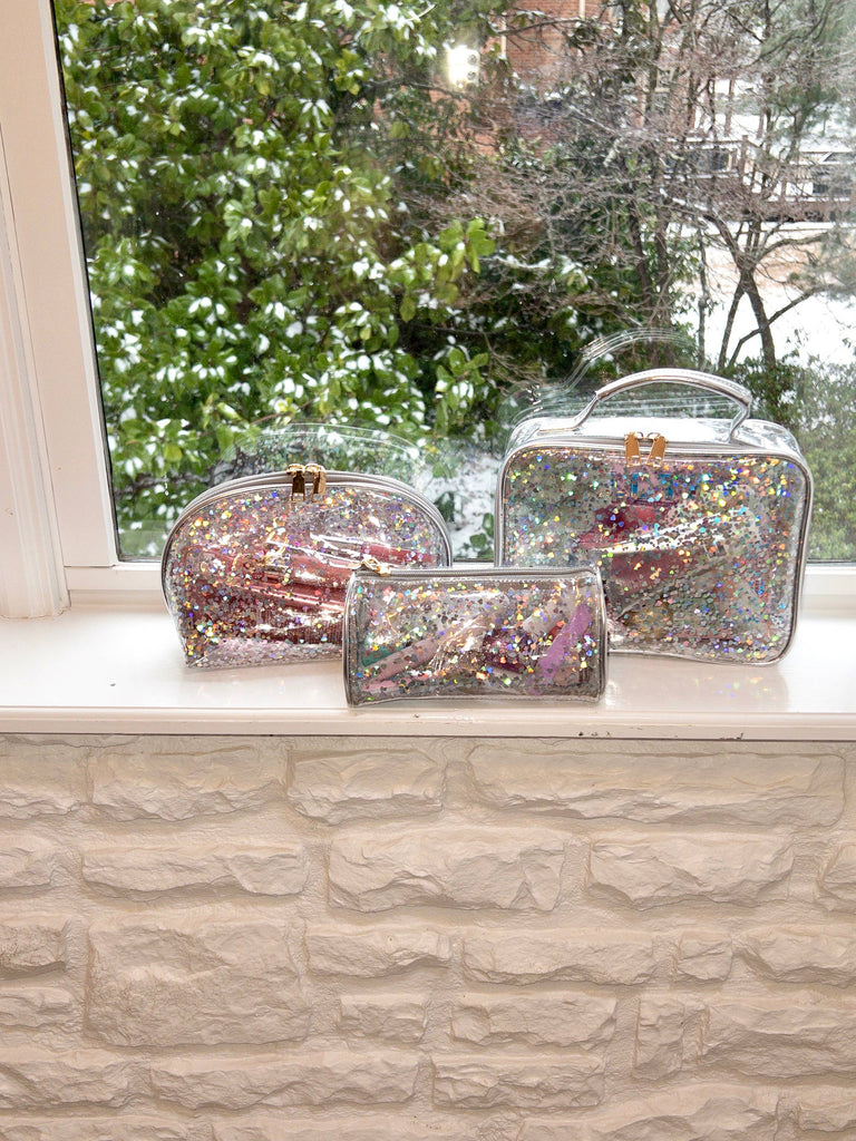 We wish the pictures did these cuties justice. Taking a cue from our best-selling style, we are thrilled to add a cosmetic trio for our Tweens, Teens and Mamas that want to sprinkle a little kindness. There are three styles in each trio that are different shapes and sizes to meet all of her travel needs. All three are piped in silver and filled with silver hearts that catch the light and shine beautifully. Sell them together or break them up and sell separately for higher markup! Large: 9.5" x 7.5" x 2.5" MSRP: $32 Medium: 7.5" x 6.5" x 4" MSRP: $28 Small: 7.5" x 4" x 3" MSRP: $22