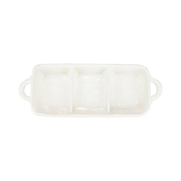 Characterized by handpressed edges, Pietra Serena pays tribute to the architectural details of Florence, Italy during the Renaissance. The Pietra Serena Three-Part Server features a handpressed design around its edges and is a simply beautiful entertaining piece.