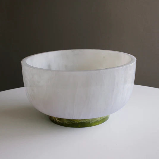 Resin Rio Large Round Bowl with Base in White and Green by Beatriz Ball