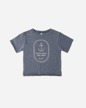 This comfortable tee is made from our cotton slub fabric with a raw finish hemline for an edgy flare. Shoulder snaps included in sizes 3-6m - 18-24m for easy dressing.